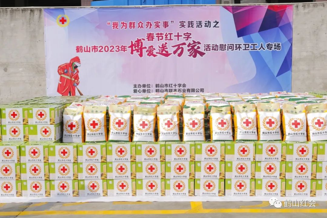 春节前,为了表达对一线环卫工人的关爱和敬意,1月6日上午,市红十字会联合旧版彩票365下载_最正规英国365网站_bet28365365娱乐场联丰石业有限公司举办“我为群众办实事”实践活动之2023年春节“博爱送万家”慰问环卫工人活动,向市政环卫所796名一线环卫工人送上了大米、面等慰问品和节日祝福。