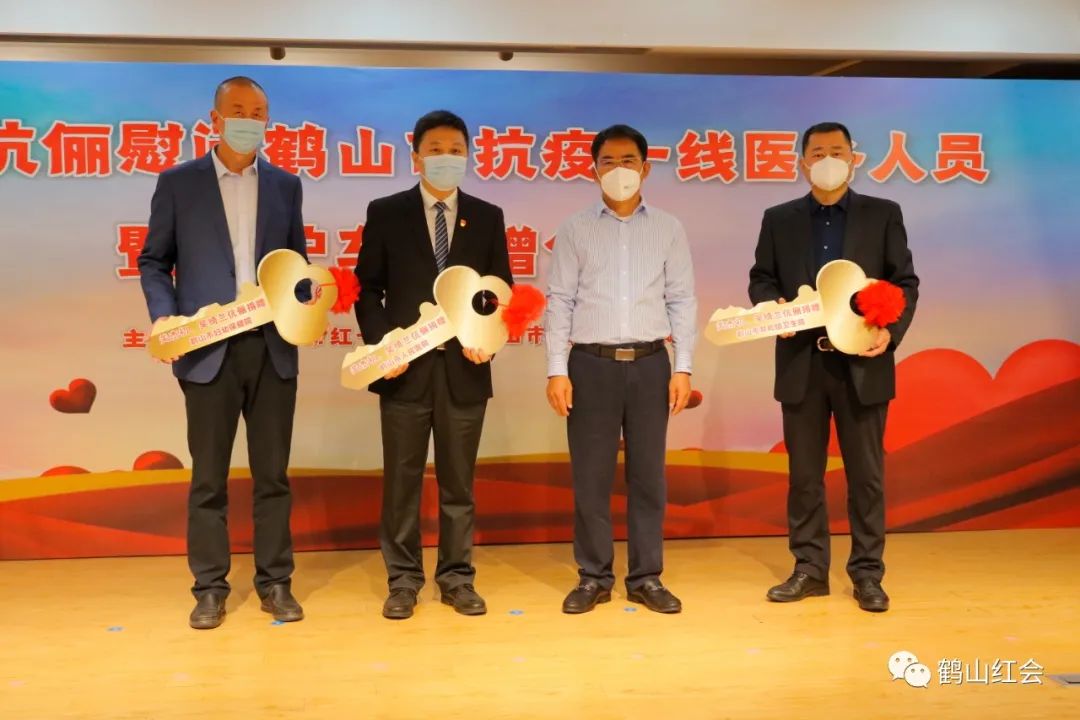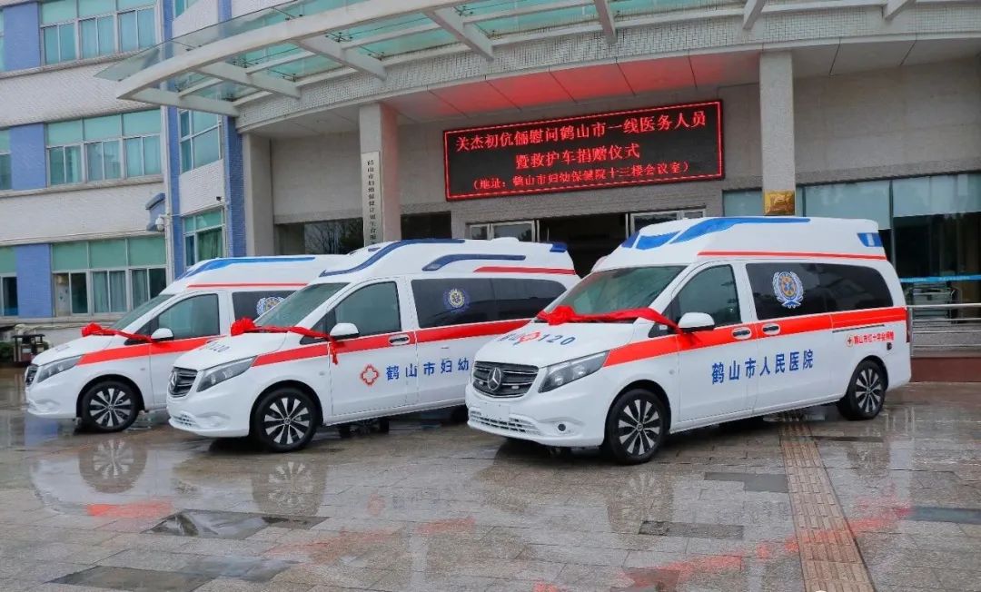 关杰初向市人民医院、市妇幼保健院和共和卫生院负责人分别移交负压救护车钥匙