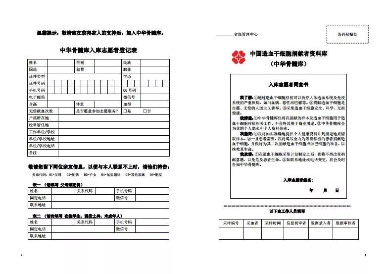 (2)准确详实地提供两位不同住址亲友的联系方式等信息,以便在志愿捐献者的资料发生变化时,能通过亲友恢复联络,避免志愿捐献者流失。
